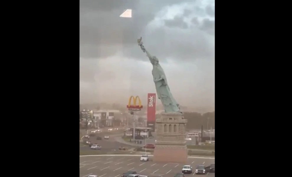 Ένα αντίγραφο του Αγάλματος της Ελευθερίας, με ύψος που άγγιζε τα 40 μέτρα, κατέρρευσε ύστερα από έντονη καταιγίδα που έπληξε την πόλη Γκουαϊμπά στη Βραζιλία το απόγευμα της Δευτέρας. Σύμφωνα με τις τοπικές αρχές και την εταιρεία που είχε την ευθύνη της κατασκευής, από την πτώση δεν σημειώθηκαν τραυματισμοί.