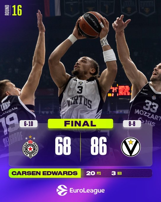 Η Βίρτους Μπολόνια πέρασε σαν....σίφουνας από την «Belgrade Arena» καθώς έκανε φύλλο και φτερό την Παρτίζαν κερδίζοντας με 68-86! Εξαιρετικοί Έντουαρντς, Άλστον, Μόργκαν!