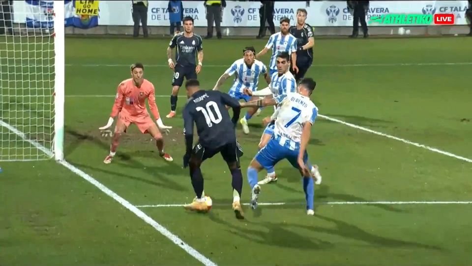 Η Ρεάλ Μαδρίτης χρειάστηκε δυο γκολ του Κιλιάν Εμπαπέ για να κάμψει την αντίσταση της Ταλαβέρα, ομάδα τρίτης κατηγορίας, και να προκριθεί στους "16" του Κυπέλλου Ισπανίας, επικρατώντας 3-2. Ο Γάλλος άνοιξε το σκορ στο 41ο λεπτό και η Ρεάλ πήρε προβάδισμα δυο τερμάτων, με αυτογκόλ του Φεράντο στις καθυστερήσεις του ημιχρόνου. Από το 80ο λεπτό και μετά μπήκαν τρία γκολ, με τον Αρόγιο να μειώνει για την Ταλαβέρα (80'), τον Εμπαπέ να κάνει το 1-3 στο 88ο λεπτό και τον Ντι Ρέντζο να διαμορφώνει το τελικό 2-3. Στο 90'+3', ο Λούνιν γλίτωσε τη Ρεάλ, από το 3-3, με σπουδαία επέμβαση.