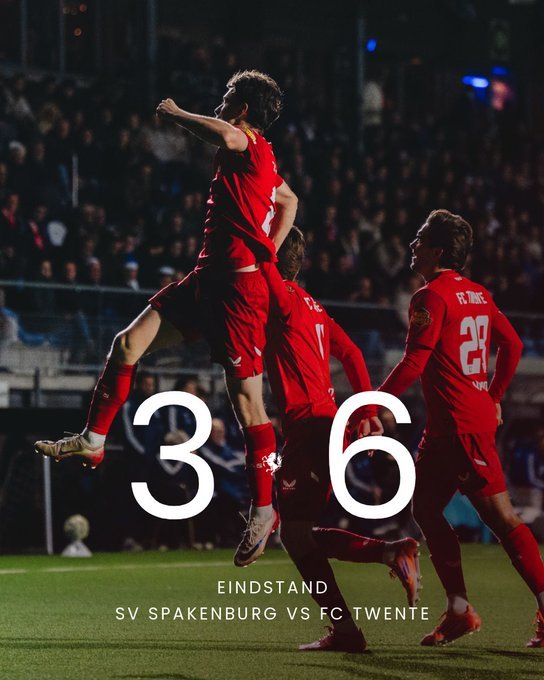 Εύκολη πρόκριση για τους «16» του Κυπέλλου πήρε η Τβέντε, καθώς πέρασε με το επιβλητικό 6-3 από την έδρα της Σπάκενμπουργκ. Στο 40’ η ομάδα του Φαν ντε Μπρομ πήρε κεφάλι στο σκορ, ενώ στο 55ο λεπτό ο Ορτζασάετερ έδωσε αέρια δύο τερμάτων στην ομάδα του. Στο 59’ ο Φαν ντε Μπελτ ανέβασε τον δείκτη του σκορ στο 3-0 και στο 69’ ο Φαν ντερ Λίντεν μείωσε προσωρινά σε 1-3. Στο 73’ ο Χλίνσον έκανε το 1-4 και στο 75’ ο Βάιντμαν έκανε 1-5. Στο 86’ ήταν η σειρά του Φαν Φονσβίγκελ να γράψει το όνομά του στον πίνακα των σκόρερ(1-6), με το 2-6 να γίνεται στο 88’ από τον Κουνστ. Στο 90’ ο Φαν Λόπικ διαμόρφωσε το τελικό 3-6.
