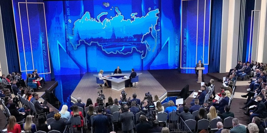 Στην καθιερωμένη συνέντευξη Τύπου του Βλαντίμιρ Πούτιν, στο τέλος του έτους, πίσω από τον Ρώσο πρόεδρο υπήρχε ένας χάρτης, όπου ουκρανικά εδάφη εμφανίζονται ως ρωσικά.
