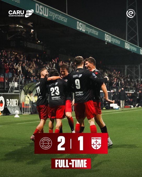 Η Εξέλσιορ λύγισε με 2-1 της Τσβόλε και πήρε σημαντική βαθμολογική ανάσα. Με την συμπλήρωση του 20λεπτού η Εξέλσιορ άνοιξε το σκορ με τον Νάουτζοκς, με την απάντηση της Τσβόλε να έρχεται στο 48’ με τον Τόμας. Στο 78’ ο Γεγκοϊάν διαμόρφωσε το τελικό 2-1.