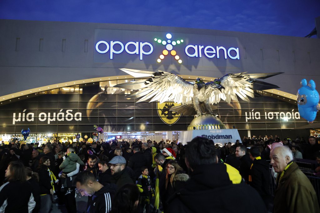 Μάλιστα στα video walls περιμετρικά του σταδίου, παίζουν συνεχώς τα highlights από τη μεγάλη νίκη επί της Κραϊόβα, με τον κόσμο να αποθεώνει.