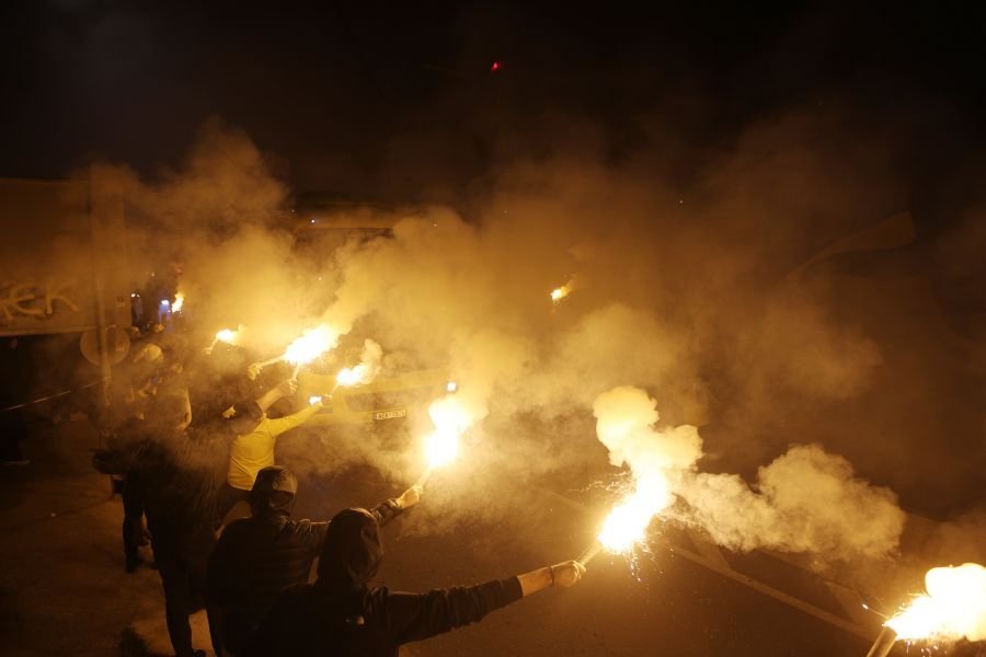 Ο κόσμος της ΑΕΚ δημιούργησε εντυπωσιακή ατμόσφαιρα και υποδέχτηκε το πούλμαν της αποστολής με εκατοντάδες καπνογόνα. Οι φίλοι της Ένωσης συγκεντρώθηκαν στην ευθεία της Πατριάρχου Κωνσταντίνου πριν την υπογειοποίηση και άναψαν εκατοντάδες καπνογόνα με τα οποία καλωσόρισαν εν μέσω αποθέωσης Μάρκο Νίκολιτς και ποδοσφαιριστές.