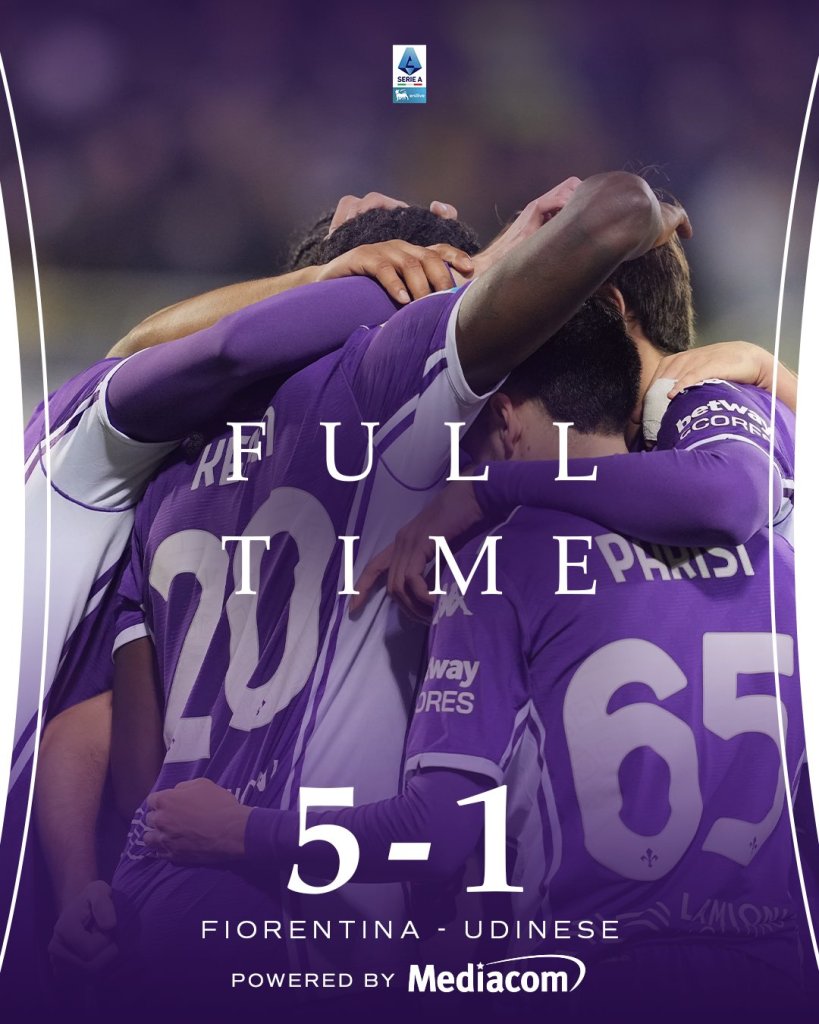 Το καλύτερο δώρο στον κόσμο της για της γιορτές έκανε η Φιορεντίνα, οη οποία διέλυσε με 5-1 την Ουντινέζε και πήρε την πρώτη νίκη της στη σεζόν στο Καμπιονάτο. Στους 9 πόντους οι «βιόλα», που απέκτησαν ελπίδα, στους 21 η Ουντινέζε που έχασε έδαφος σε σχέση με την εξάδα.