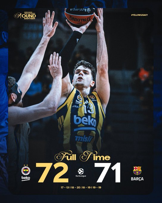 Η Φενέρμπαχτσε νίκησε τη Μπαρτσελόνα στην Κωνσταντινούπολη (72-71) στα πλαίσια της 18η αγωνιστική της EuroLeague, με την ψυχραιμία του Μπάλντουιν από τη γραμμή των βολών και την αστοχία του Πάντερ στην εκπνοή του χρόνου.