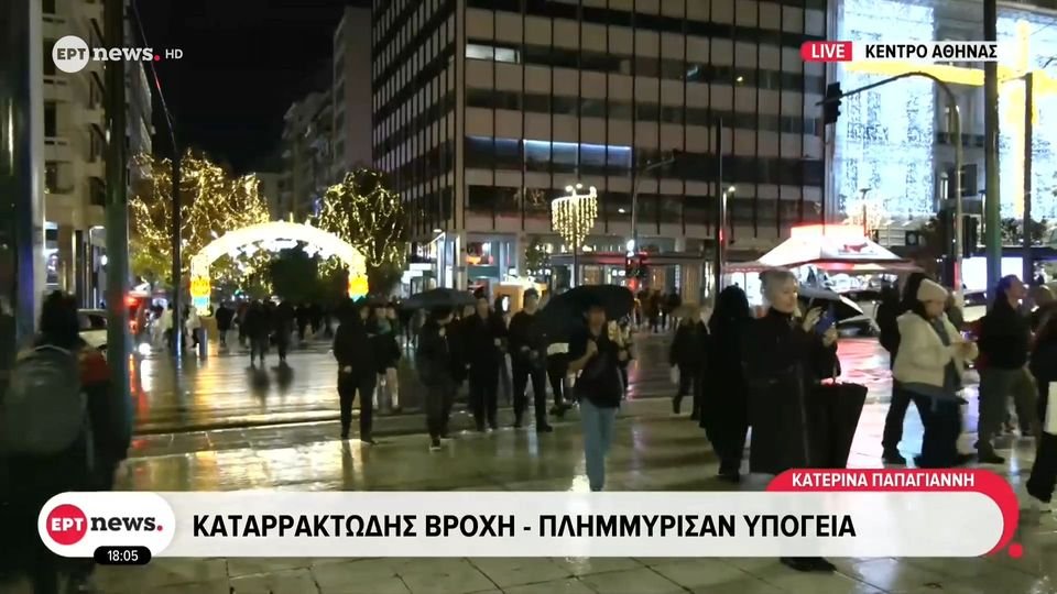Στο κέντρο της Αθήνας διεξάγεται κανονικά η κυκλοφορία στο Σύνταγμα και αρκετός κόσμος περπατά με ομπρέλες στον πιο πολυσύχναστο εμπορικό δρόμο της Αθήνας. Τα καταστήματα έκλεισαν, ενώ τα εμπορικά θα παραμείνουν μέχρι και τις 8μμ.