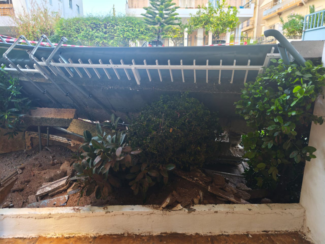 Η κοπέλα που μένει στον πρώτο όροφο σηκώθηκαν και έφυγαν, έπαθε υστερία. Νόμιζε ότι θα γκρεμιζόταν το σπίτι γιατί η μάντρα έπεσε πάνω στις κολώνες και τραντάχτηκε όλη η πολυκατοικία», λέει ο κ. Παναγιώτης ο οποίος μένει στον πρώτο όροφο της πολυκατοικίας επί της οδού Λυσικράτους και αφού άκουσε έναν εκκωφαντικό θόρυβο από την κατάρρευση της μάντρας είδε τα ορμητικά νερά να φτάνουν μέχρι το μπαλκόνι του.