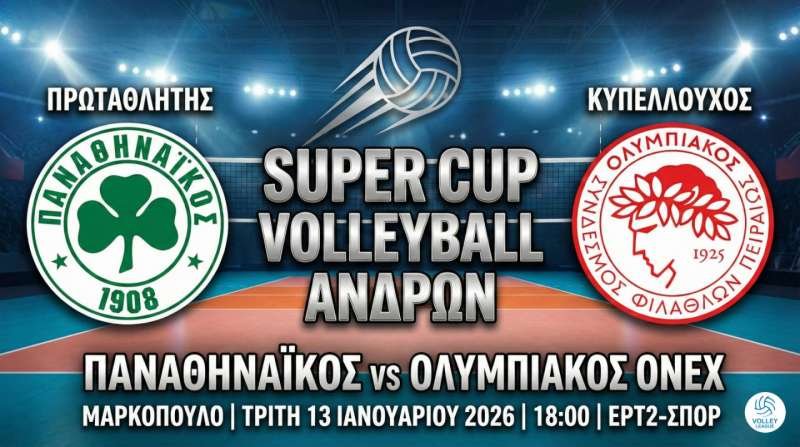 H ΕΣΑΠ ανακοινώνει πως το Σούπερ Καπ 2025 μεταξύ του πρωταθλητή 2024-25 Παναθηναϊκού Α.Ο. και του κυπελλούχου 2024-25 Ολυμπιακού Σ.Φ.Π. ΟΝΕΧ θα διεξαχθεί στο Δημοτικό Γυμναστήριο Μαρκοπούλου την Τρίτη 13 Ιανουαρίου 2026.