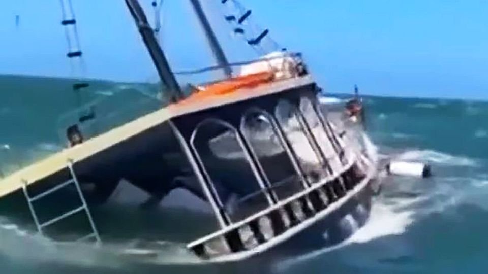 Το βίντεο δείχνει το σκάφος, ένα ιστιοφόρο τύπου σκούνα, να έχει βυθιστεί μερικώς, ενώ πυροσβέστες επεμβαίνουν και, σύμφωνα με πληροφορίες, διασώζουν πέντε μέλη του πληρώματος, έπειτα από βλάβη στην πλώρη κοντά σε παραλία της πόλης Λαγκούνα, στην πολιτεία Σάντα Καταρίνα της Βραζιλίας, στις 20 Δεκεμβρίου.