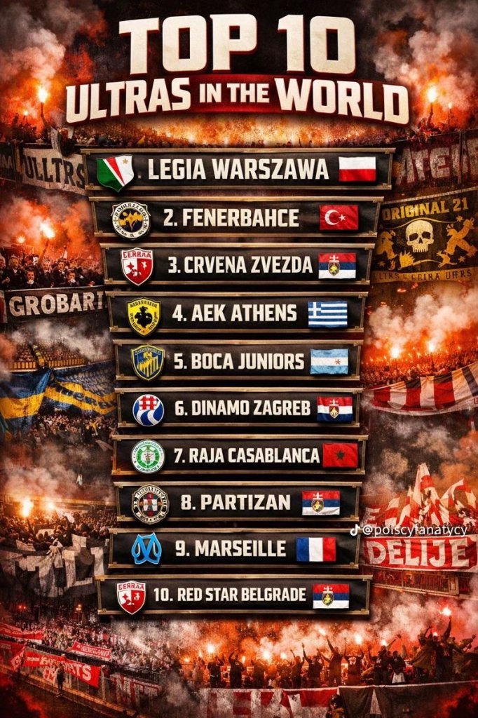 Δειτε τη θέση κατέταξαν τους οπαδούς της ΑΕΚ οι Πολωνοί - Ποια ειναι 10άδα
