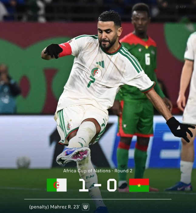Η Αλγερία επικράτησε με 1-0 της Μπουρκίνα Φάσο για τη 2η αγωνιστική του Γκρουπ Ε’ και εξασφάλισε την πρόκριση στην επόμενη φάση. Οι Αλγερινοί πήραν τη νίκη χάρη στο εύστοχο χτύπημα πέναλτι του Μαχρέζ στο 23ο λεπτό. Είχαν ευκαιρίες για να καθαρίσουν το ματς όμως τα κακά τελειώματα κράτησαν στο ματς την Μπουρκίνα Φάσο η οποία πίεσε στα τελευταία λεπτά αλλά δεν κατάφερε να ισοφαρίσει. Πλέον για 2η και 3η θέση όλα για κριθούν την τελευταία αγωνιστική στο ματς της Μπουρκίνα Φάσο με το Σουδάν.