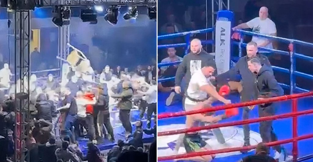 Η ένταση κλιμακώθηκε ραγδαία, με περίπου 50 άτομα να εισβάλλουν στον αγωνιστικό χώρο και να ακολουθεί γενική σύρραξη. Οι διοργανωτές της εκδήλωσης δεν κατάφεραν να αποκαταστήσουν την τάξη, υποστηρίζοντας πως δεν υπήρχε επαρκές προσωπικό ασφαλείας για την αντιμετώπιση τέτοιου περιστατικού.