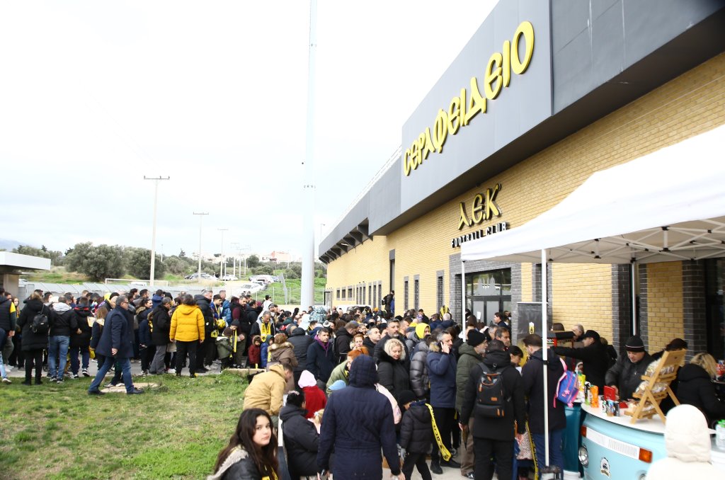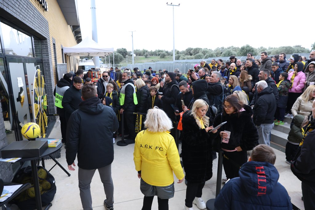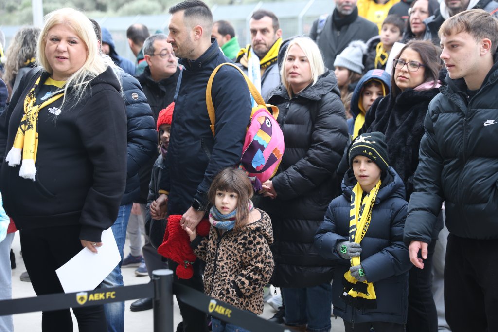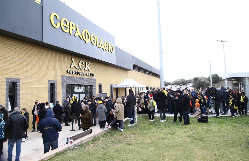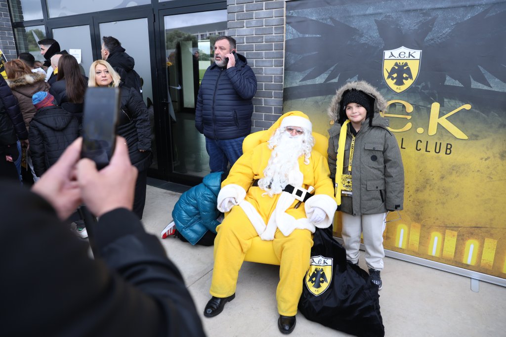 Μαγικές κιτρινόμαυρες στιγμές στα Σπάτα. Το προπονητικό κέντρο της ΑΕΚ γέμισε οικογένειες και παιδικές φωνές. Πλήθος κόσμου αψήφησε το κρύο και πήγε στο… βουνό για να δει το εσωτερικό φιλικό της Ένωσης αλλά και να συμμετάσχει στην γιορτή του AEK Kids Club που διοργάνωσε η ΠΑΕ. Στα Σπάτα βρέθηκαν και παλαίμαχοι της ομάδας που φωτογραφήθηκαν με τους φίλους της Ένωσης. Την παράσταση έκλεψε ο κιτρινόμαυρος Αγιό Βασίλης. Καλή χρονιά να έχουμε όλοι ματς και μόνο χαρές για την οικογένεια της ΑΕΚ.