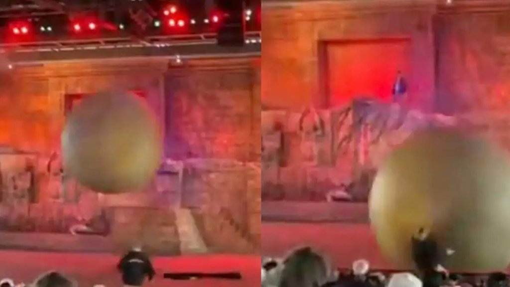 Σε βίντεο από το περιστατικό της Τρίτης, ο βράχος φαίνεται να βγαίνει από τις ράγες του και να κατευθύνεται προς το κοινό, τη στιγμή που ένας εργαζόμενος στέκεται μπροστά του και πέφτει στο έδαφος από την πρόσκρουση. Ο εργαζόμενος δεν φαίνεται να σηκώνεται αμέσως, ενώ άλλοι συνάδελφοί του τρέχουν για να τον βοηθήσουν.