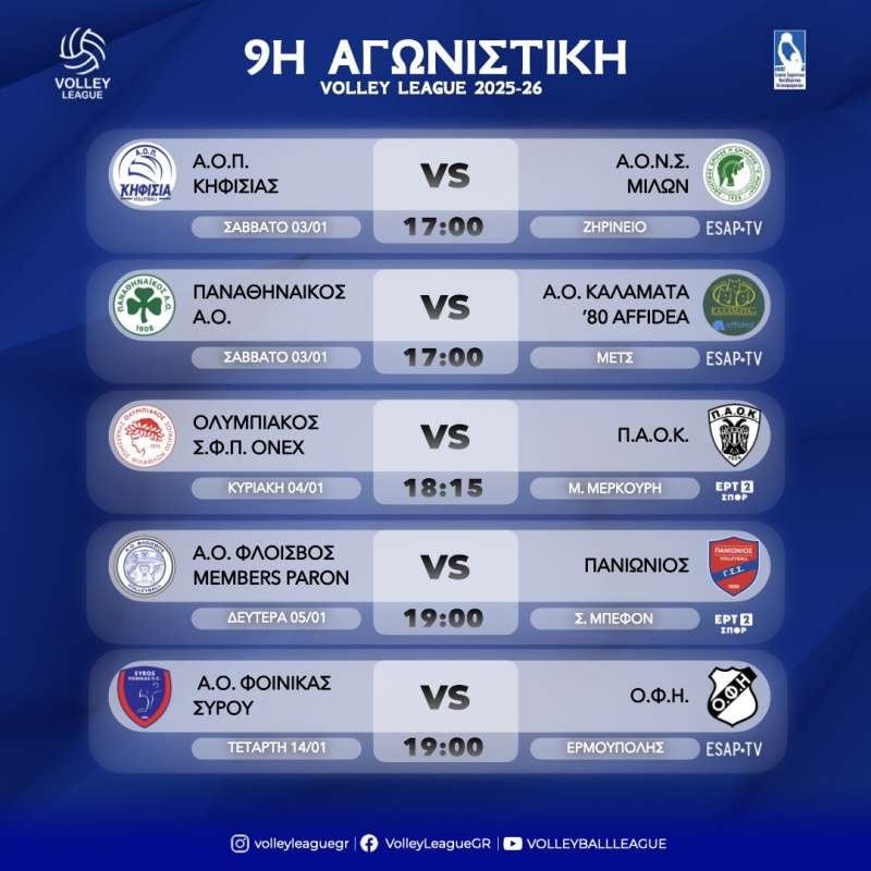 Volley League - 9η αγωνιστική