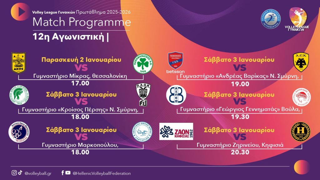 Volley League Γυναικών - 12η αγωνιστική