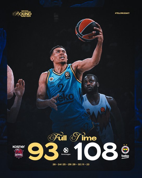 Αν και βρέθηκε να χάνει με 10 πόντους στο 25', η Φενέρμπαχτσε γύρισε το ματς στη Βιτόρια και επικράτησε της Μπασκόνια με 108-93 και απέχει μόλις μία νίκη από την πρωτοπόρο Βαλένθια.