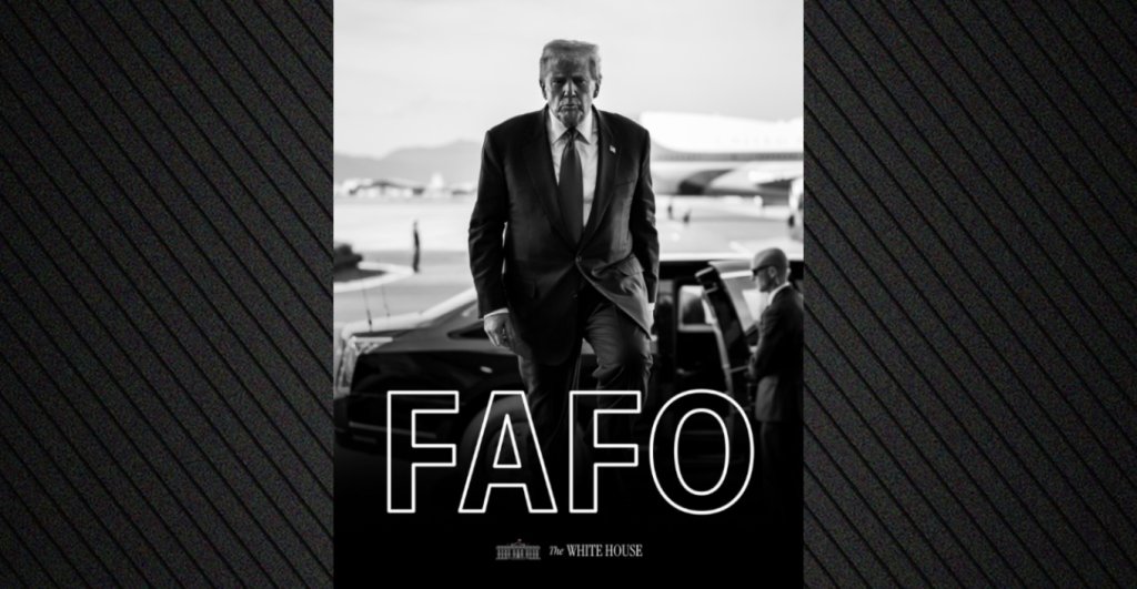 Στην ανάρτηση που συνοδεύει τη φωτογραφία γράφει επίσης «δεν παίζουμε». Το ακρωνύμιο «FAFO» στα ελληνικά αποδίδεται ως «Κάνε μ@@@@@@@ και θα δεις τι θα πάθεις» και χρησιμεύει ως προειδοποίηση ότι η απερίσκεπτη ή προκλητική συμπεριφορά θα οδηγήσει σε άμεσες, συχνά αρνητικές, συνέπειες.