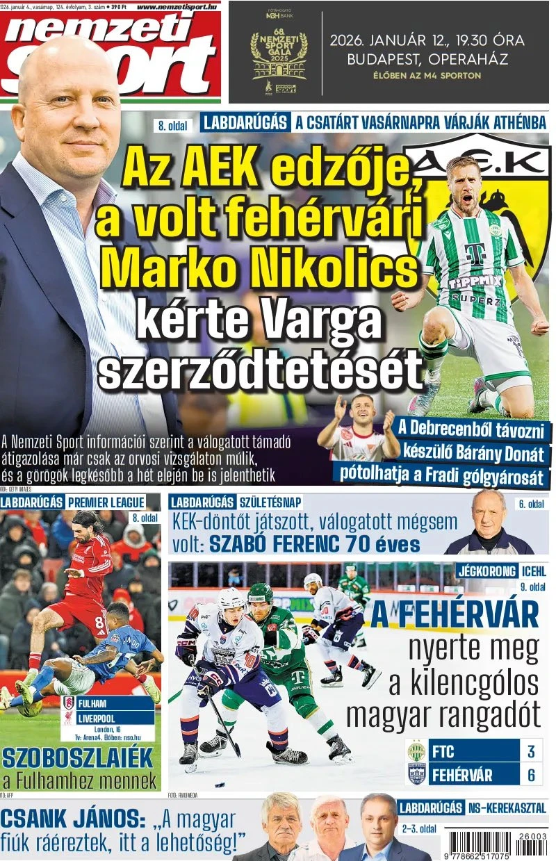 Η άφιξή του αναμένεται μέχρι απόψε το βράδυ στην Αθήνα και, την ίδια στιγμή, η μεταγραφή του αρχισκόρερ της Εθνικής Ουγγαρίας παραμένει πρώτο θέμα στα ουγγρικά Μέσα.
