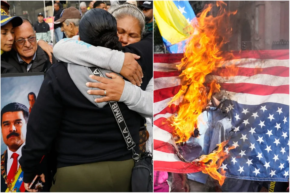 Υποστηρικτές του Μαδούρο αγκαλιάζονται και καίνε αμερικανικές σημαίες / Φωτογραφία: AP