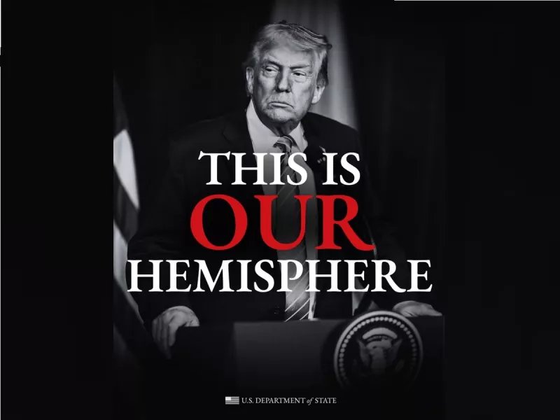 Συνεχίζοντας τα μηνύματα επίδειξης δύναμης, το Υπουργείο Εξωτερικών των ΗΠΑ ανάρτησε στα μέσα κοινωνικής δικτύωσης φωτογραφία του Ντόναλντ Τραμπ με τη φράση «Αυτό είναι το δικό μας ημισφαίριο».