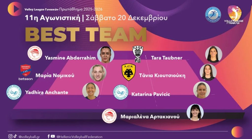 Η ΕΟΠΕ έκανε γνωστή την καλύτερη 7άδα της 11ης αγωνιστικής, με την αθλήτρια της ΑΕΚ, Τάνια Κιουτσιούκη να είναι μέλος της.