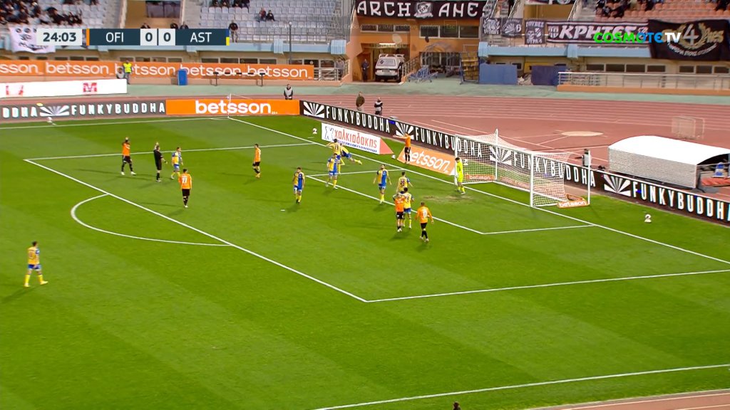Ο Χατζηθεοδωρίδης μπήκε στη μεγάλη περιοχή και γύρισε την μπάλα, η οποία πέρασε κόρνερ και διαμαρτυρήθηκε για πέναλτι. Ο έλεγχος ολοκληρώθηκε από το VAR και το παιχνίδι συνεχίστηκε κανονικά