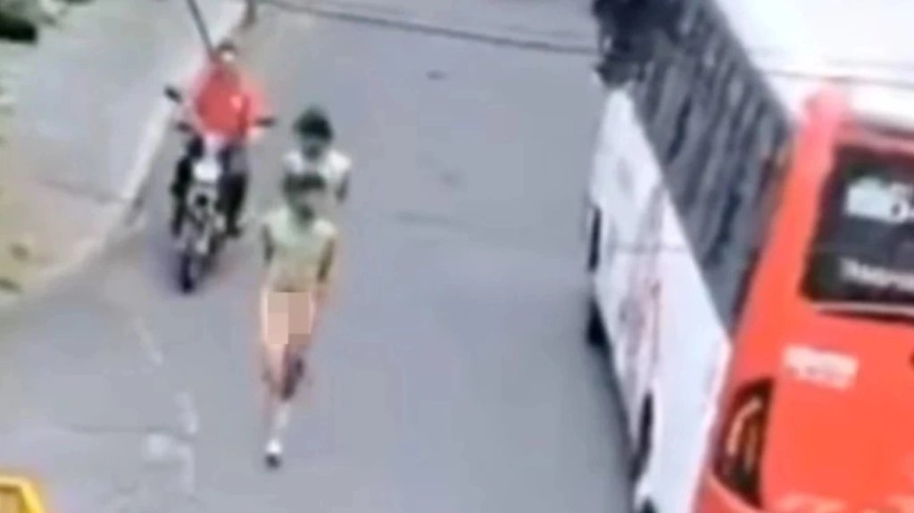 Στο βίντεο που έχει γίνει viral στο Χ, οι δύο άνδρες κατεβαίνουν από έναν ανηφορικό δρόμο γυμνοί, ενώ πίσω τους ακολουθεί ένας άνδρας με μοτοσικλέτα, ο οποίος κορνάρει συνεχώς για να προσελκύσει την προσοχή των περαστικών.