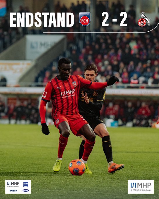 Ματσάρα ανάμεσα σε Χαϊντενχάιμ και Κολωνία, που ήρθανβ ισόπαλες 2-2 και μοιράστηκαν από έναν βαθμό. Σταθερά στις τελευταίες θέσεις η Χαϊντενχάιμ.
