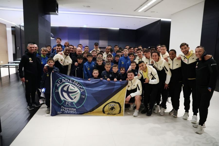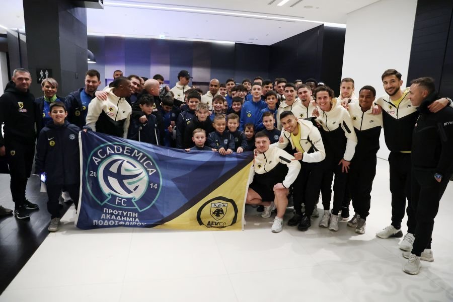 Ομορφες εικονες στη Θεσσαλονίκη. Παιδιά και μέλη της ακαδημία Academica FC που ανήκει στο κιτρινόμαυρο δίκτυο ακαδημιών επισκέφτηκαν το ξενοδοχειο της ΑΕΚ. Εκεί φωτογραφήθηκαν με τον Μάρκο Νίκολιτς και τους παίκτες και πήραν αυτόγραφα.
