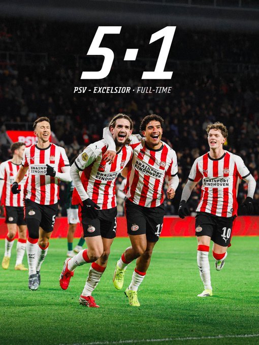 Δεν έχει αντίπαλο εντός συνόρων η Αϊντχόφεν, που κέρδισε με 5-1 την Εξέλσιορ κι έφτασες τις 12 σερί νίκες, καλπάζοντας προς τον τίτλο.