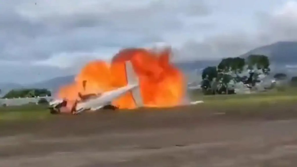 Σε βίντεο που δημοσιοποιήθηκαν σε πλατφόρμες κοινωνικής δικτύωσης καταγράφεται η στιγμή που το αεροσκάφος συντρίβεται σε χωράφι και τυλίγεται στις φλόγες.