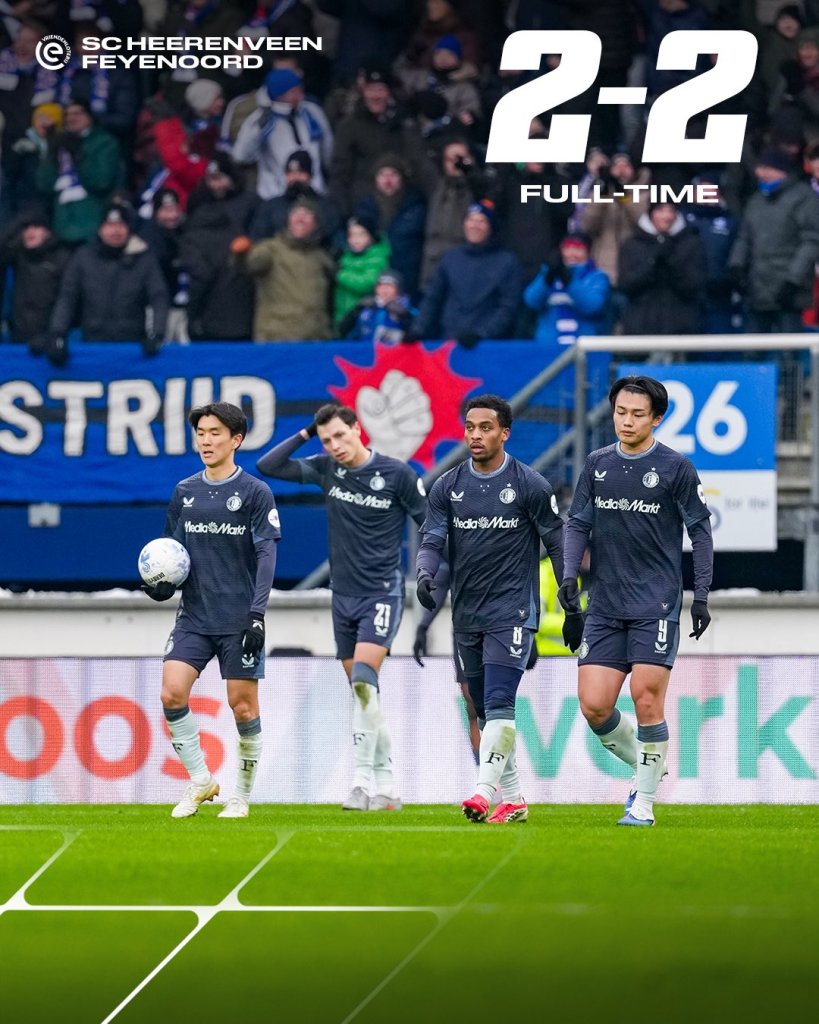Εφιαλτικό ήταν το τελευταίο δεκαήμερο του 2025, για τη Φέγενορντ, με μηδέν νίκες στους τέσσερις τελευταίους αγώνες, σε όλες τις διοργανώσεις, και αποκλεισμός από τη συνέχεια του Κυπέλλου. Το ξεκίνημα του 2026 δεν διέφερε και πολύ, με τη Φέγενορντ να χάνει άλλους δυο βαθμούς, με το 2-2 στην έδρα της εξαιρετικής Χέρενφεν.