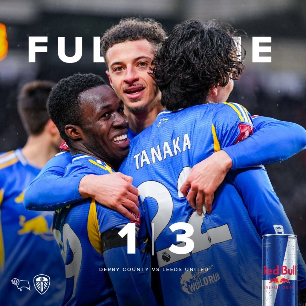 Στο Pride Park, η Λιντς βρέθηκε πίσω στο σκορ, απέναντι στη Ντέρμπι Κάουντι, έχασε πέναλτι, αλλά, στην επανάληψη, σκόραρε δυο φορές, σε διάστημα πέντε λεπτών, και, με το τελικό 3-1, προκρίθηκε στον επόμενο γύρο του Κυπέλλου Αγγλίας.