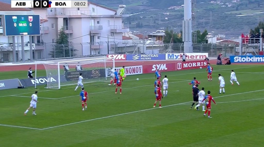 Στο 9ο λεπτό μετά από διαδοχικά σουτ στα σώματα των αμυντικών του Βόλου, ο Κωστή γέμισε από αριστερά, ο Τσάπρας έβαλε την προβολή στο 2ο δοκάρι και ο Σιαμπάνης απέκρουσε.