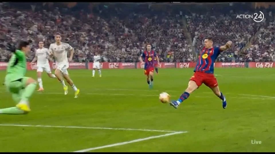 Στο 45+4’ οι «μπλαουγκράνα» πήραν εκ νέου το προβάδισμα στο σκορ, μιας και ο Λεβαντόφσκι εκμεταλλεύτηκε την κάθετη του Πέδρι και με πανέμορφο πλασέ νίκησε τον Κουρτουά για το 2-1.