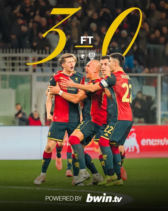 Ανάσα για την Τζένοα, που διέλυσε με 3-0 την Κάλιαρι, επέστρεψε στις νικε μετά από έναν μήνα και βρέθηκε στο +5 από τη ζώνη του υποβιβασμού.
