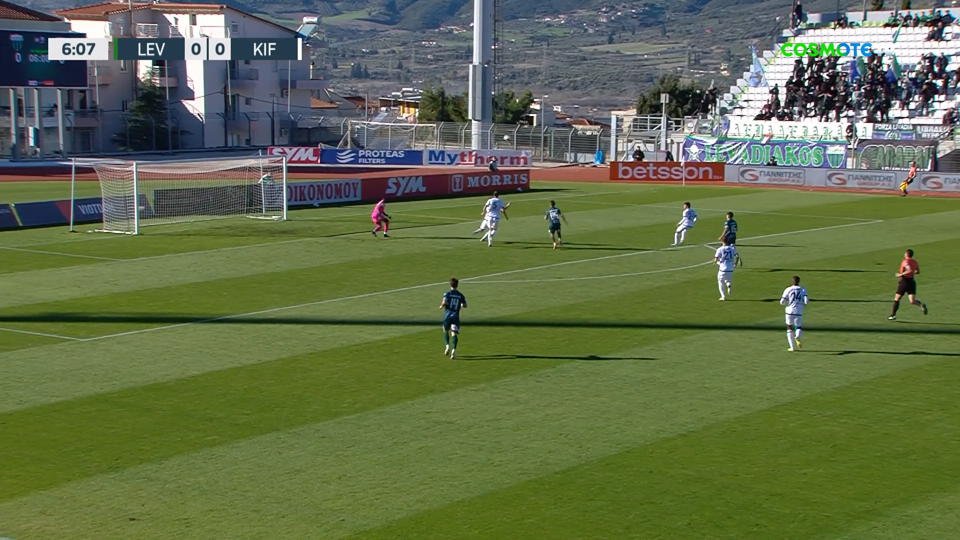 Ο Γκούμας έφυγε στην αντεπίθεση έκανε και ένα πολύ ωραίο σουτ, το οποίο έβγαλε ο Ραμίρες, αλλά η φάση υποδείχθηκε ως οφσάιντ.