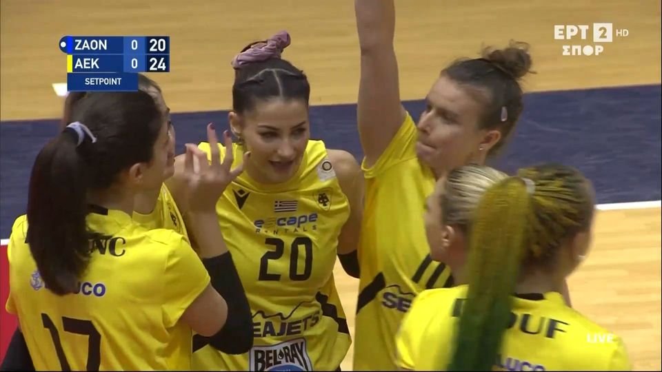 Η ΑΕΚ πήρε προβάδισμα στα σετ απέναντι στον ΖΑΟΝ με 20-25 στο ματς πουδιεξάγεται στο Ζηρίνειο