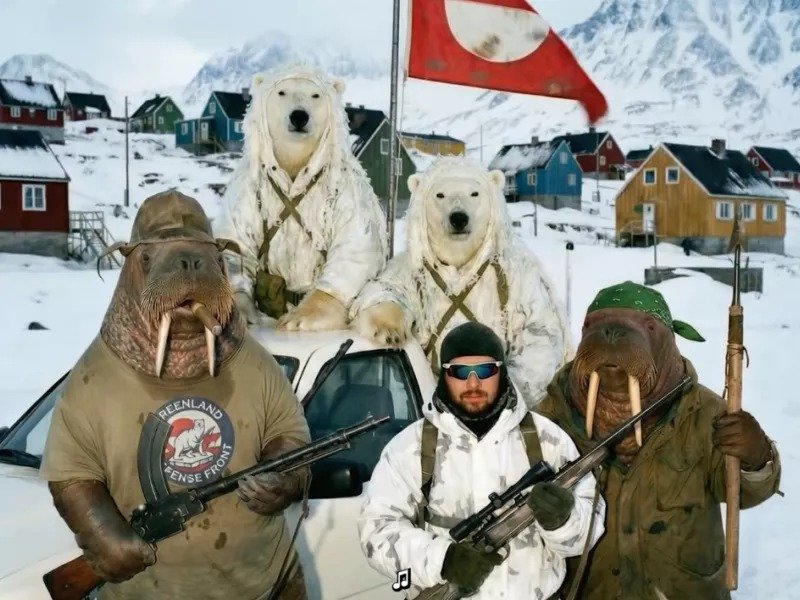 Στο μουσικό βίντεο, δημιουργημένο με Τεχνητή Νοημοσύνη, ονόματι Greenland Defense Front - The Hungry Giant (Γροιλανδικό Μέτωπο - Ο Πεινασμένος Γίγαντας, βλέπε Ντόναλντ Τραμπ) εμφανίζονται οι υπερασπιστές της Γροιλανδίας, άνθρωποι αλλά και... θαλάσσιοι ελέφαντες ή πολικές αρκούδες, όλοι με όπλα στα χέρια και έτοιμοι να αντιμετωπίσουν τον Τραμπ.