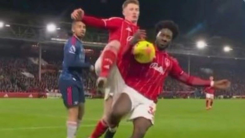 Στο "City Ground", Νότιγχαμ Φόρεστ και Άρσεναλ έμειναν στο 0-0, με τους φιλοξενούμενους να φωνάζουν για πέναλτι στη φάση του 79ου λεπτού. Σε μια διεκδίκηση, ο Άινα της Νότιγχαμ φαίνεται να ακουμπάει τη μπάλα με το χέρι του και ο υπεύθυνος VAR αποφάσισε πως η κίνηση του 29χρονου Νιγηριανού προς τη μπάλα ήταν φυσική κίνηση.