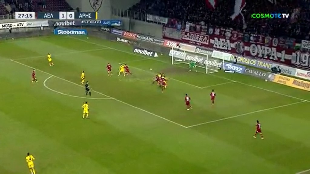 Ευκαιρία για τον Άρη, σέντρα του Πέρεθ που πέρασε από όλους και κατέληξε στον Φαντιγκά, ο οποίος σούταρε πάνω στον Αναγνωστόπουλο!