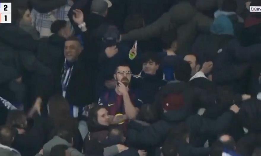 Στις εξέδρες του "Ανοέτα" επικρατούσε πανζουρλισμός από οπαδούς της Σοσιεδάδ, την ίδια στιγμή που, ανάμεσά τους, ήταν ένας και μοναδικός της Μπαρτσελόνα, με φανέλα της ομάδας, φανερά προβληματισμένος από την εξέλιξη του αγώνα.