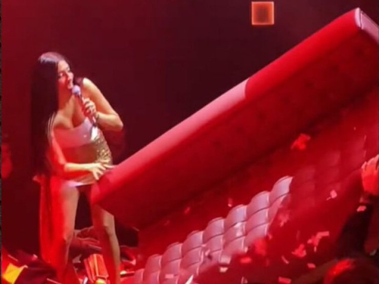 Μέσα από βίντεο που δημοσιεύτηκε στο TikTok, καταγράφθηκε η στιγμή που ενώ η τραγουδίστρια ερμήνευε το «Κανείς εδώ δεν τραγουδά», ένα πρόσωπο που διασκέδαζε στο μαγαζί της Θεσσαλονίκης, έριξε καναπέ στη σκηνή.