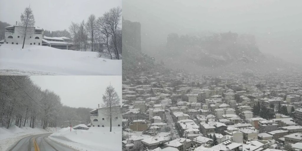 Παράλληλα, στα λευκά ξύπνησε το πρωί της Τετάρτης και η πόλη της Καλαμπάκας. Με απόφαση του δημάρχου Λευτέρη Αβραμόπουλου παραμένουν κλειστά όλα τα σχολεία, σε όλο τον Δήμο Μετεώρων.