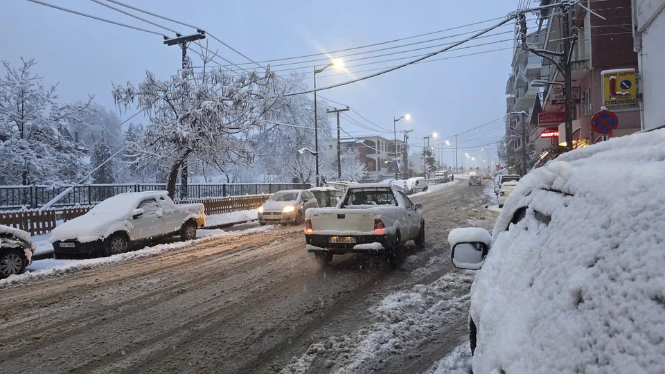 Όπως καταγράφει το trikalavoice.gr το έχει στρώσει και σε κεντρικά σημεία και συνιστάται προσοχή στις μετακινήσεις.