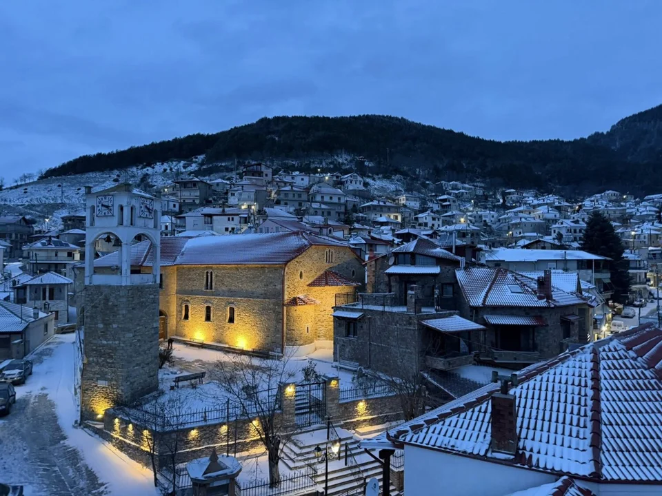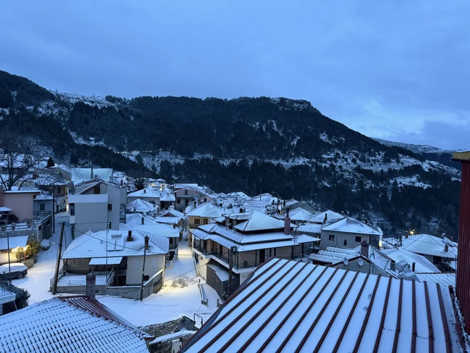 Σύμφωνα με το evima.gr, το έχει ήδη «στρώσει» σε σημεία του ορεινού οδικού δικτύου, δημιουργώντας εικόνες χειμερινές. Η θερμοκρασία στην περιοχή είναι ιδιαίτερα χαμηλή, ενώ η ορατότητα παραμένει περιορισμένη λόγω της ομίχλης.