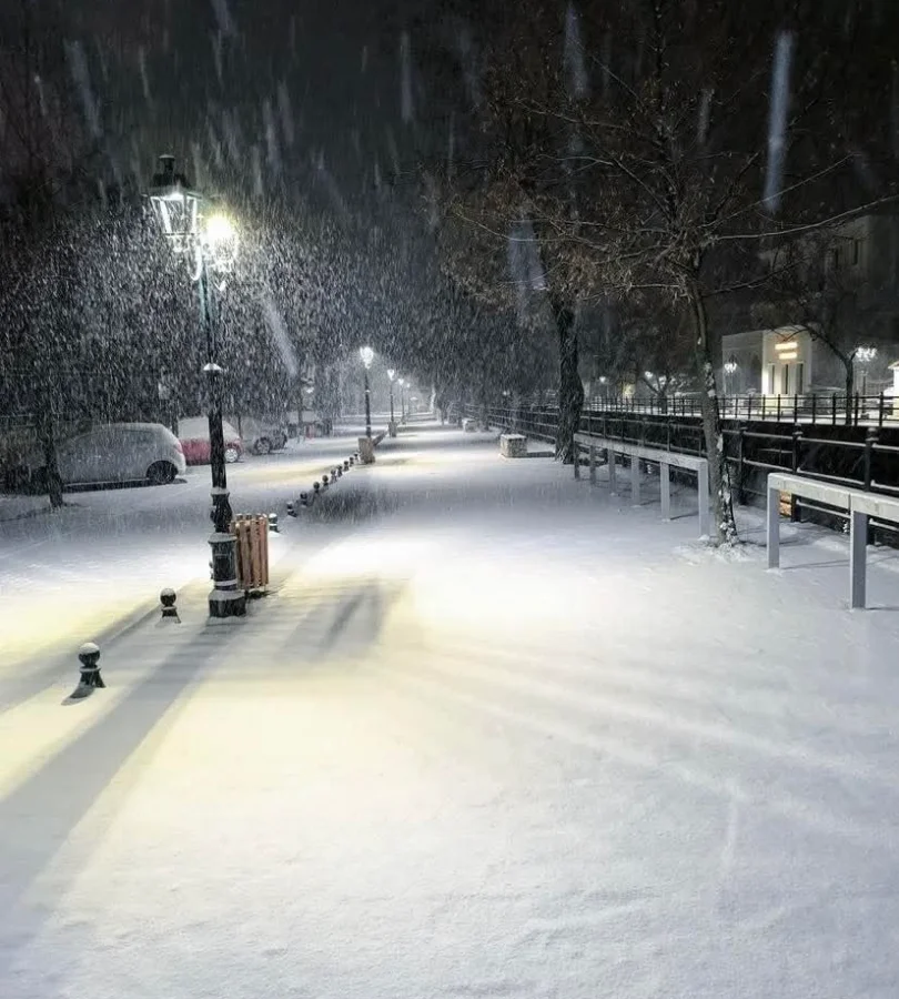 Πυκνή χιονόπτωση σημειώνεται από τις πρώτες πρωινές ώρες της Τετάρτης και μέσα στην πόλη των Τρικάλων.