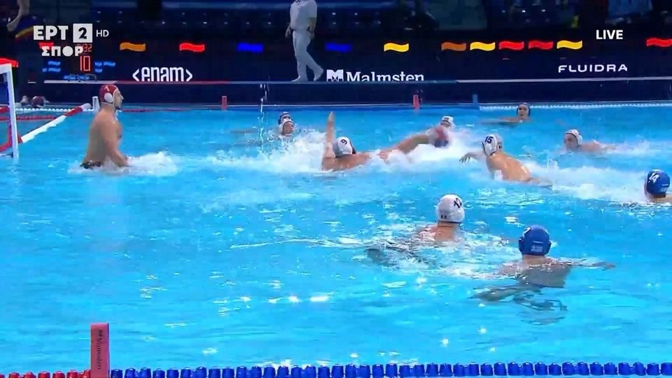 Η εθνική έδειξε από νωρίς τα… δόντια της και «καθάρισε» από το πρώτο οκτάλεπτο, που έληξε με 5-0, με τέρματα των Παπαναστασίου, Αργυρόπουλο, Σπάχιτς, Χαλυβόπουλου και Παπανικολάου. Ο Γενηδουνιάς έκανε το 6-0 για την Εθνική, ενώ η Ρουμανία βρήκε το πρώτο της γκολ ακριβώς στα μισά του δεύτερου οκταλέπτου (6-1). Φυσικά οι παίκτες του Θοδωρή Βλάχου δεν πτοήθηκαν και απάντησαν με τα δεύτερα γκολ από Χαλυβόπουλο, Αργυρόπουλο και Γενηδουνιά, για να κλείσει το ημίχρονο με 9-1.